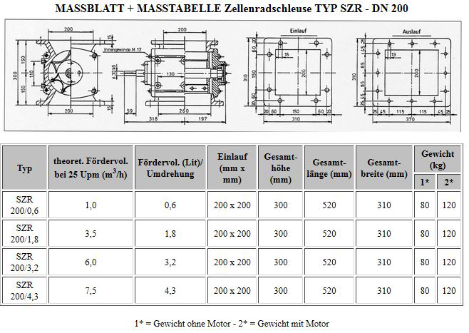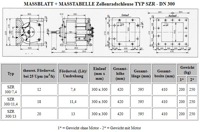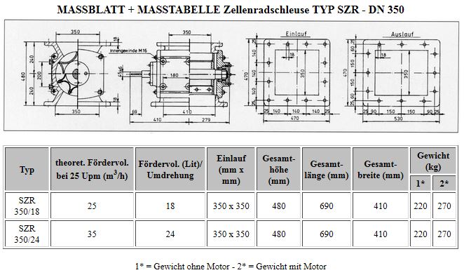 Gehäuse aus Guß Zellenrad aus Stahl oder Edelstahl. Auch mit außenliegenden Lager lieferbar.