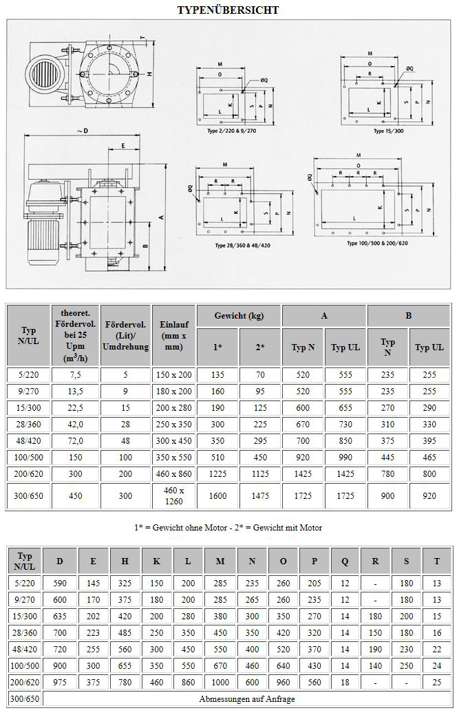 Austragsleistungen von 7,5 – 300 m³ werden über den Typ UL ermöglicht.